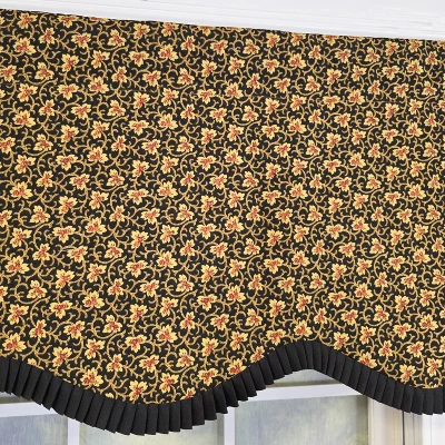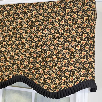 Make a striking design statement with the RLF Home Flemington Provance valance, beautifully crafted from premium 100% cotton decorator fabric. Sized 50″ wide and 15″ Long, this fully lined black valance is tailored to fit windows up to 48″ wide and features an elegant French-pleated ribbon trim along the bottom for texture and bespoke detail. Fully lined in ivory poly-cotton, it ensures beautiful drape, long-lasting structure, and soft light diffusion while delivering privacy. Ideal for traditional, modern, or eclectic interiors, it installs effortlessly on 2-1/2″ continental rods, 3/4″ curtain rods, tension rods, or decorative poles, instantly completing any window with designer flair. Spot clean to preserve its crisp look. Combining fast delivery, superb workmanship, and distinctive fabric styling, this valance is a perfect finishing touch that adds polished sophistication to any space.