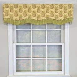 Add warmth and sunshine to your room with the cheerful Kingston Glory Valance by RLF Home. Featuring a soft yellow hue, this 50″ wide and 16″ Long-inch window valance is made of 100% cotton and fully lined with a durable ivory poly/cotton blend. It fits windows up to 48 inches wide, and multiples can be used for a continuous flow across wider areas. The valance includes a coordinating stripe along the bottom and a braided trim that adds depth and texture. Ideal for cottage, traditional, or farmhouse décor, this piece is proudly made in the USA from high-quality domestic and imported fabrics. It installs effortlessly on a 2-1/2″ continental rod, 3/4″ curtain rod, tension rod, or decorative pole. Spot clean only to maintain its vibrant color and structure. Let the Kingston Glory Valance brighten your space with its sunny style and refined details.