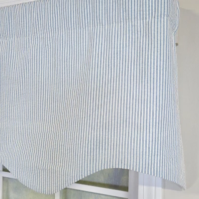 Transform your windows with the RLF Home Seersucker Regal Valance in calming Blue. This 100% cotton valance, measuring 50″ wide and 17″ Long, fits windows up to 48″ wide, with multiples for wider windows. Its seersucker texture adds a serene, textured elegance. Fully lined with an ivory 70% polyester, 30% cotton blend, it ensures durability and a polished finish. The 3″ rod pocket supports 2-1/2″ continental rods, 3/4″ curtain rods, tension rods, or decorative poles for easy setup. Spot clean for simple maintenance. Made in the USA with fast delivery, this valance uses decorator-quality fabrics, perfect for kitchens, bedrooms, or living rooms. Its tranquil blue hue and quality craftsmanship create a peaceful, sophisticated atmosphere, making it an ideal choice for enhancing your home decor with a stylish, durable window treatment that complements both traditional and contemporary interiors.