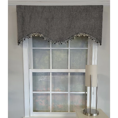 RLF Home 3″ Rod Pocket High Quality Fabric Jasper Cornice Valance With Tassel Trim For Windows 50″ X 17″ Charcoal