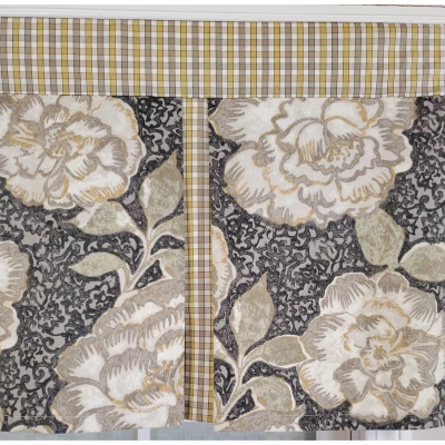 RLF Home 3″ Rod Pocket High Quality Fabric Peony Ball Pleated Valance For Windows 50″ X 16″ Gray