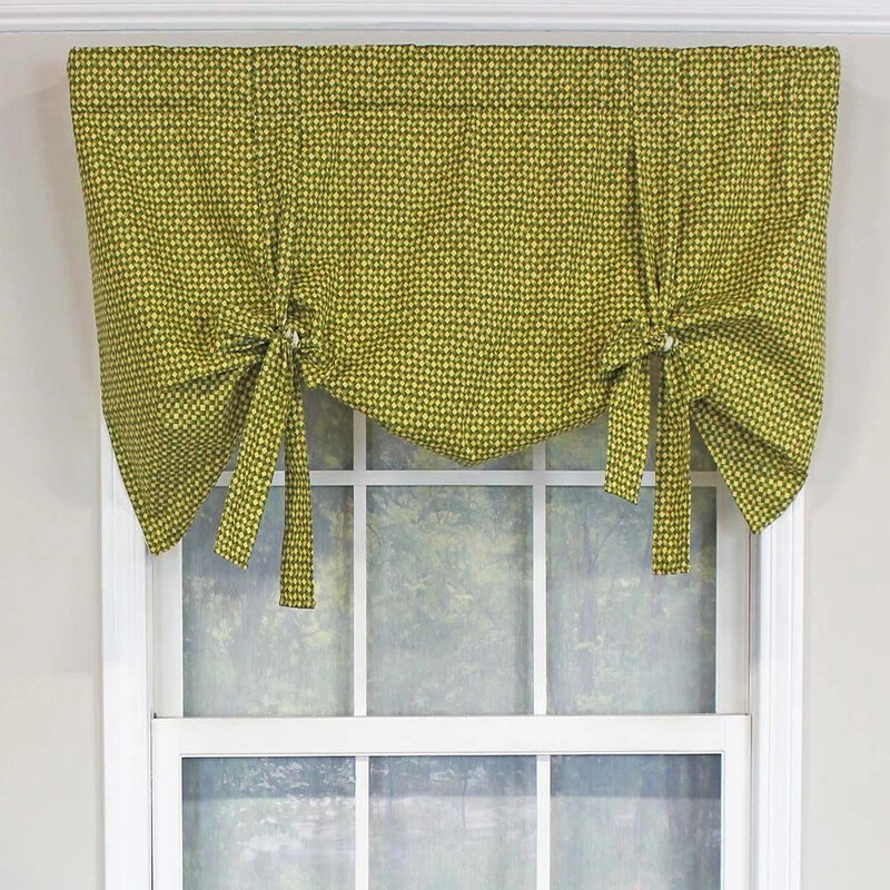 This tie-up valance features a bold color and design with self-ties. It is a versatile and stylish option for windows up to 48 inches wide. It can be hung flat or gathered, and it will look great in a variety of décor styles. The 3-inch rod pocket fits perfectly on a 2.5-inch continental rod, but it can also be used with a regular 3/4-inch curtain rod or decorative pole up to 1.3/8 inches in diameter. The valance is made of a durable fabric with bold color and design. It is machine-washable, making it easy to care for. The valance is also lined, which helps to block out light and provide privacy. This valance is a great way to add a touch of style and sophistication to your windows. It is perfect for bedrooms, living rooms, kitchens, and any other room in your home.