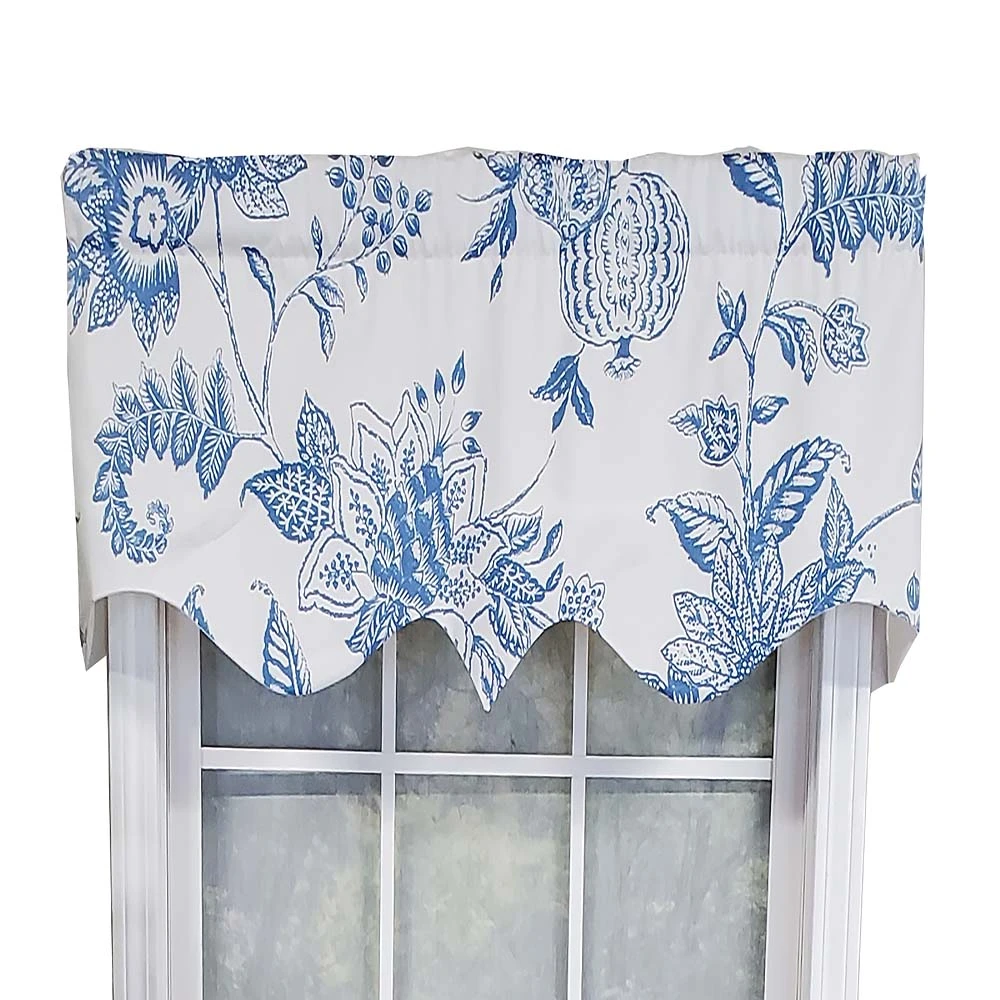 RLF Home Natalia Regal Valance High Quality Window Treatment 3″ Rod Pocket 50″ X 17″ Cyan Blue/White