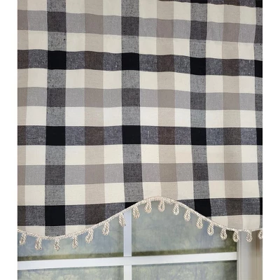 The Ruskin Check Provance Valance is a testament to timeless sophistication. Crafted from the finest 100% cotton, this valance showcases a classic ruskin check provance valance pattern that exudes an air of understated elegance. Its crisp, clean lines and neutral color palette effortlessly complement a variety of interior styles, from traditional to contemporary. The valance is meticulously lined with soft ivory cotton,No header, enhancing its luxurious drape and providing a subtle warmth. With a convenient 3″ rod pocket and low-maintenance spot cleaning, this valance offers both style and practicality. Elevate your window treatment with the Ruskin Check Provance Valance, a piece that embodies the essence of refined living. Measuring: 50″ x 15″ Color: Black.