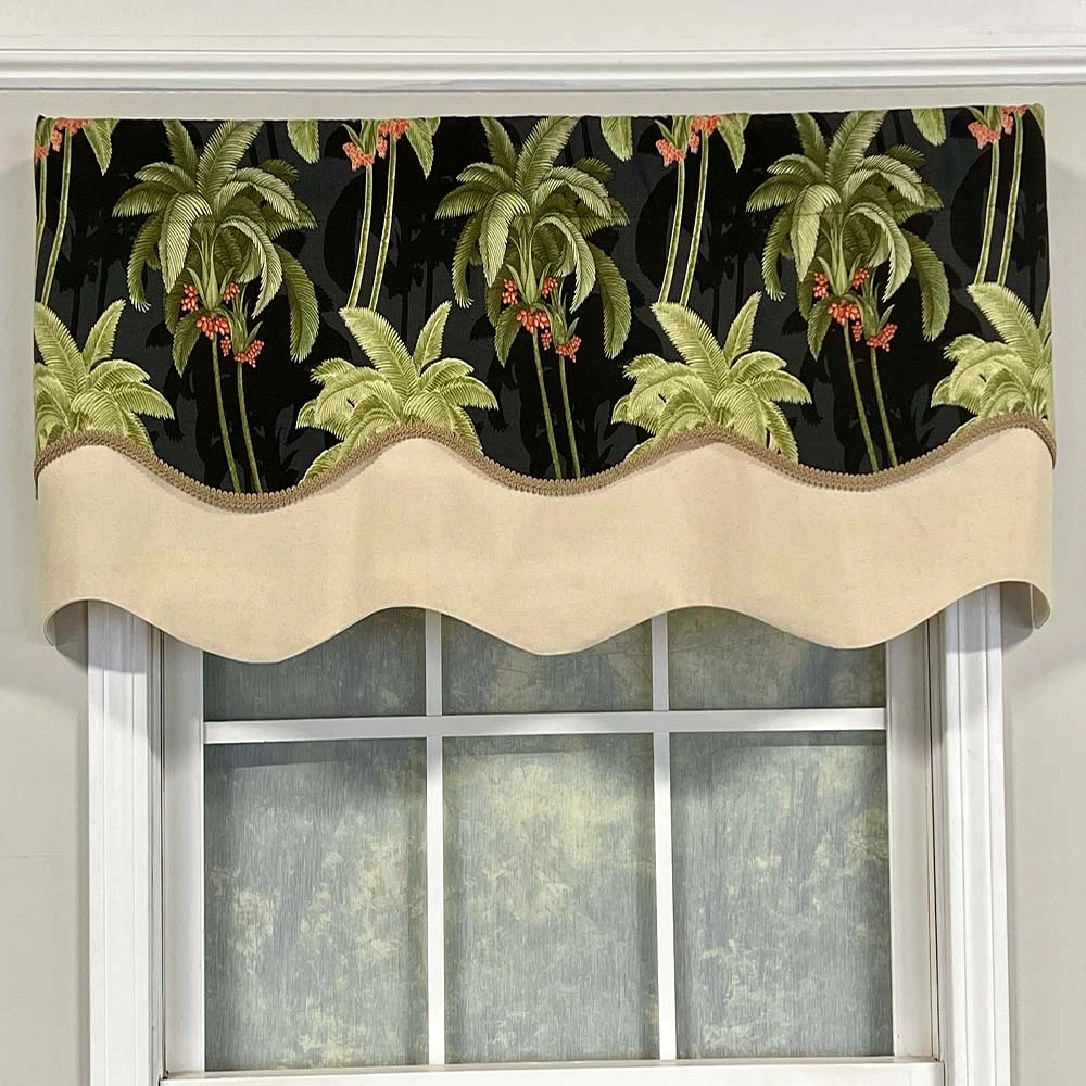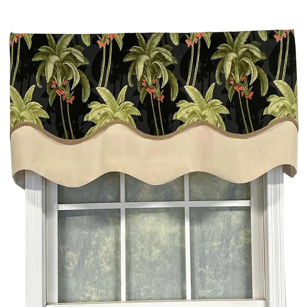 RLF Home Shadow Gimp Trim Detail Printed Palm Glory High Quality Valance 3″ Rod Pocket 50″ X 16″ Ebony Black