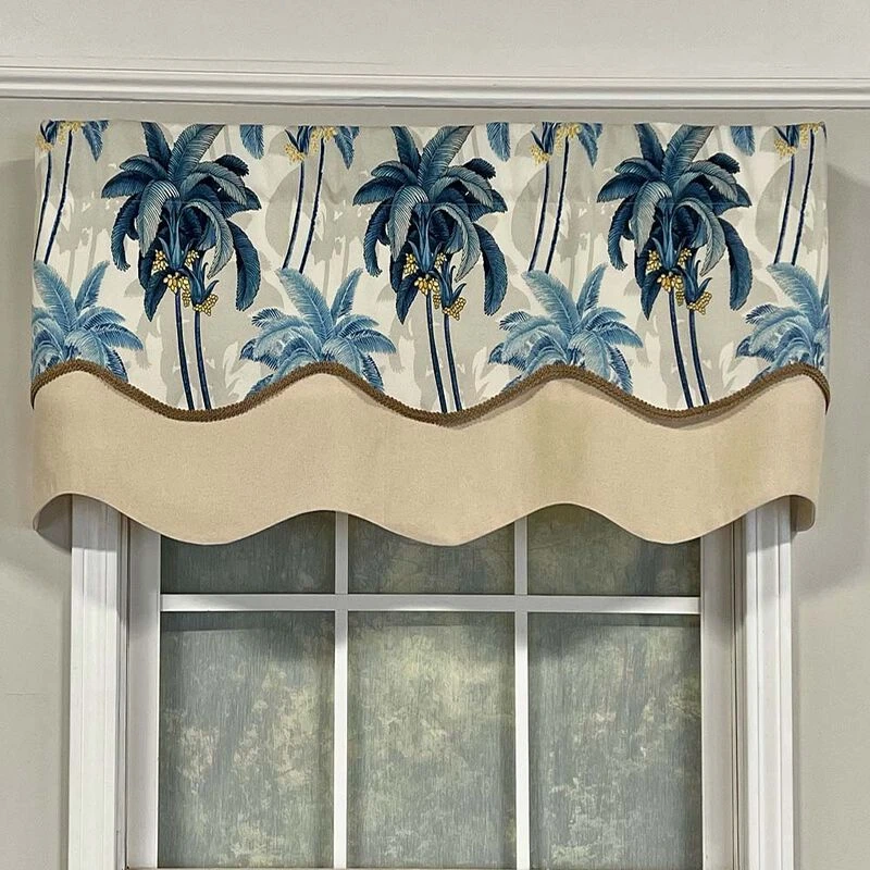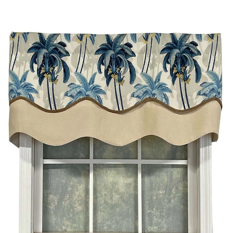 This valance features a beautiful tropical print of palm trees, with a coordinating bottom layer and gimp trim. It is made of high-quality fabric that is both durable and stylish. The valance measures 48″ wide and can be hung flat or gathered, making it a versatile addition to any home. The valance fits windows up to 48″ wide, but you can use multiple valances for wider windows. It has a 3″ rod pocket that fits perfectly on a 2-1/2″ continental rod, but it can also be used with a regular 3/4″ curtain rod or a decorative pole up to 1-3/8″ diameter. The valance is machine-washable and dryable, making it easy to care for. It is a great way to add a touch of tropical style to your home, and it would look great in a variety of settings, from a beach house to a modern living room.