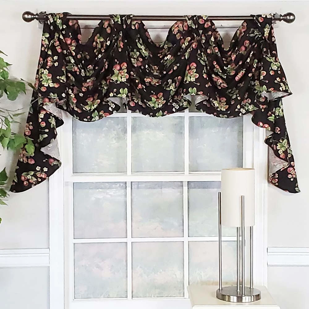 RLF Home Strawberry Fields 3-Scoop Victory Swag For Your Your Home Decor 4″ Top Tabs Center 25″ Tails 50″ X 18″ Black