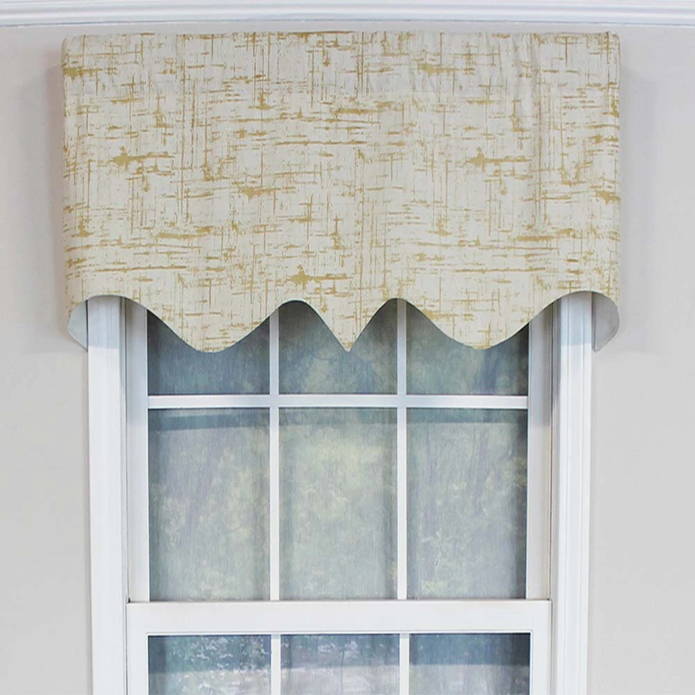 RLF Home Zino Gold Thin Lines Regal Window Treatment High Quality Valance 3″ Rod Pocket 50″ X 17″ Gold/Ivory